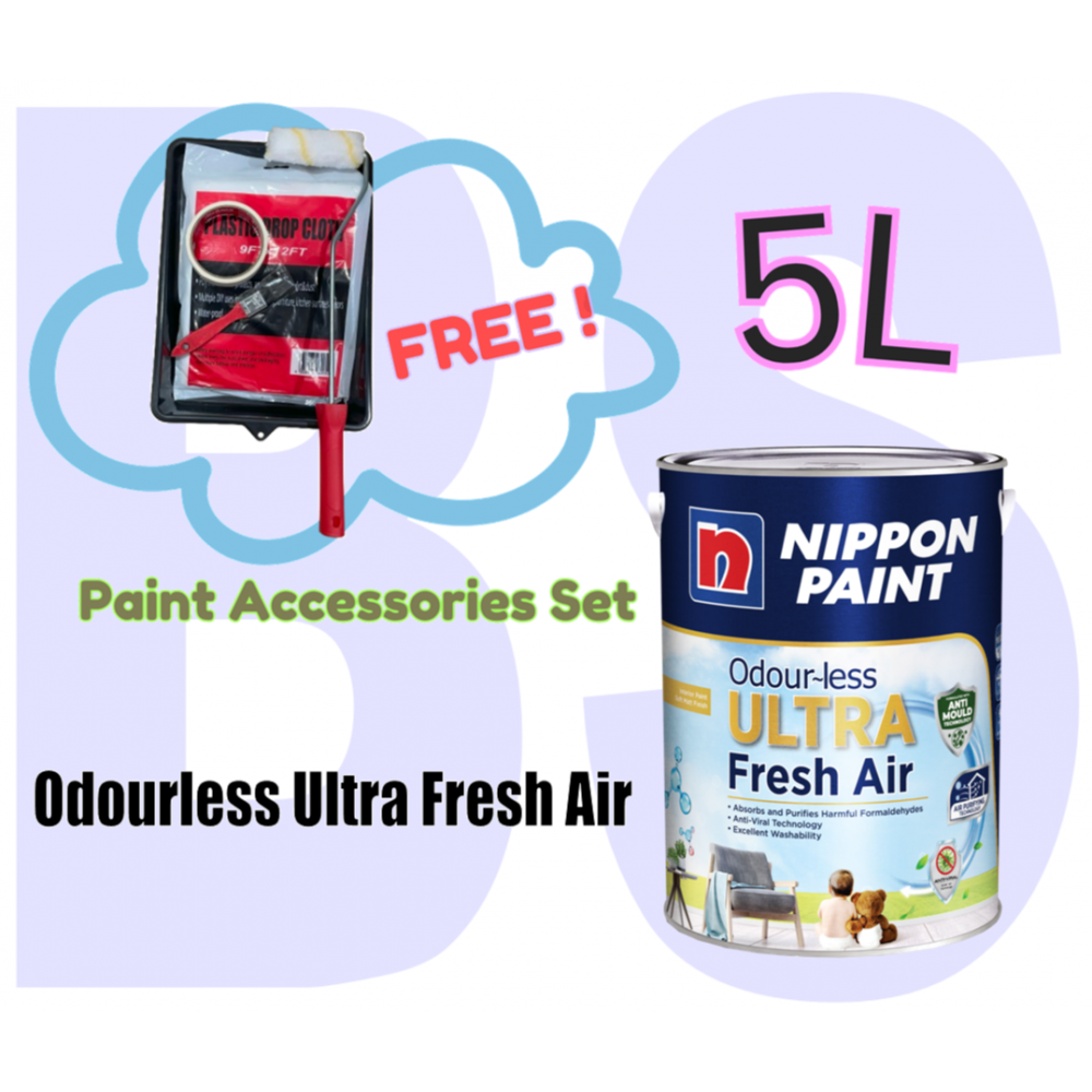 Nippon Paint Odourless Ultra Fresh Air Interior Wall Paint 5L. Free Paint Accessories Set.