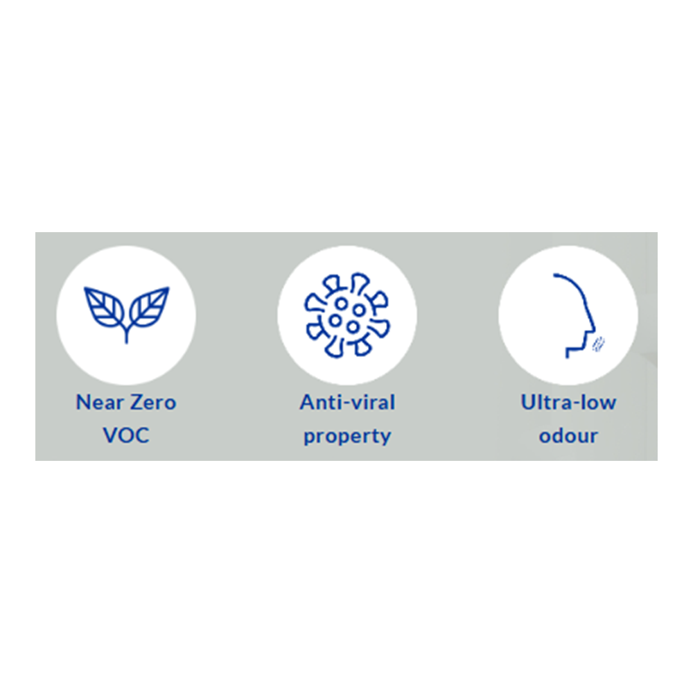 Odour-less Ultra Fresh Air is an ultra-premium interior paint with a refined matte finish, meticulously engineered to be virtually odour-free. It continuously enhances indoor air quality by absorbing harmful formaldehyde and incorporates advanced anti-viral properties. It has an extremely low odour during and after application, making it an excellent choice for repainting projects in occupied spaces.