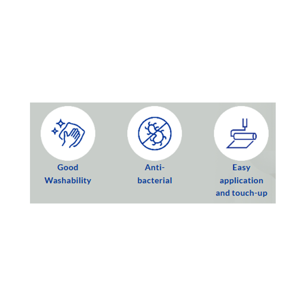 EasyWash & Clean is a premium matte finish interior paint that boasts superior application and touch-up capabilities. By minimizing light reflection, the classic matt finish conceals surface imperfections, and reduces glare, making it perfect for rooms with large windows or hallways. It also delivers exceptional coverage and washability while offering anti-bacterial protection to maintain healthier and more hygienic living spaces.