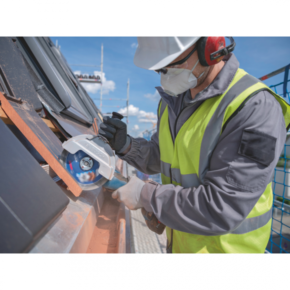 The GWS 18V-180 P Professional cuts all kind of metal, concrete, bricks, and tiles. The angle grinder is compatible with all Bosch Professional 18V batteries and chargers (Professional 18V System) and with all AMPShare Alliance 18V batteries and chargers; for maximum power, use ProCORE18V ≥ 5.5 Ah. Also compatible with AMPShare, the multi-brand battery alliance.Among the angle grinder features are Restart Protection, Soft Start, and a Vibration Control side handle.