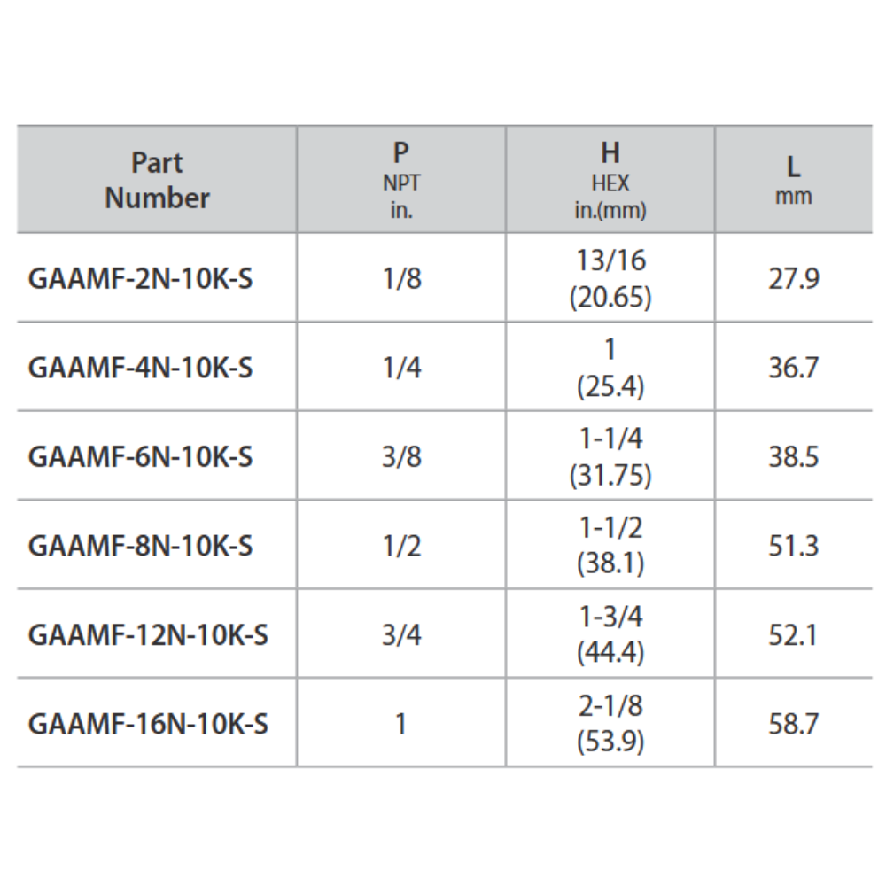 | GAAMF-2N-10K | 1/8 | 27.9 | 13/16(20.65) |