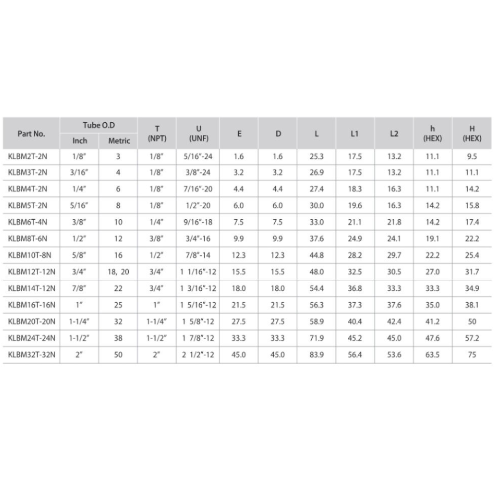 | KLBM4T-2N-SS | 1/4" | 6 |