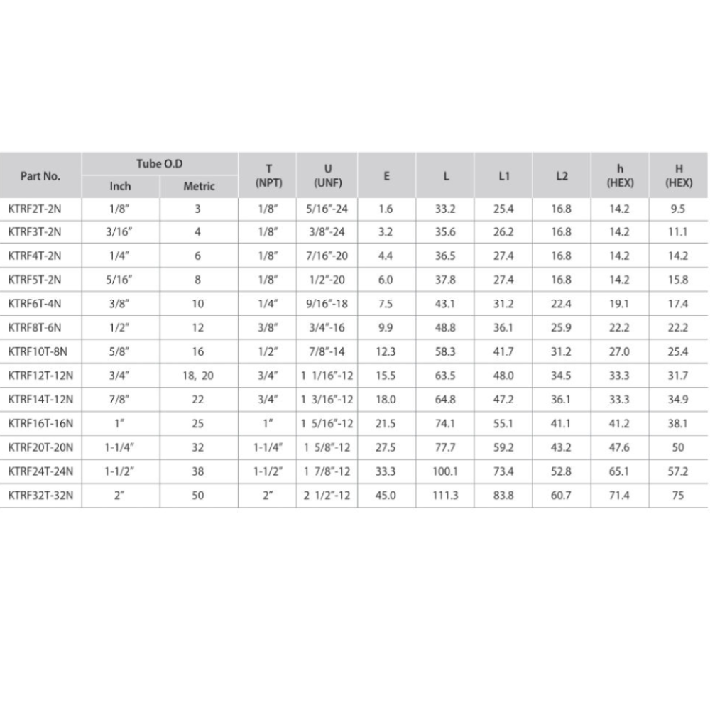 | KTRF2T-2N-B | 1/8" | 3 |