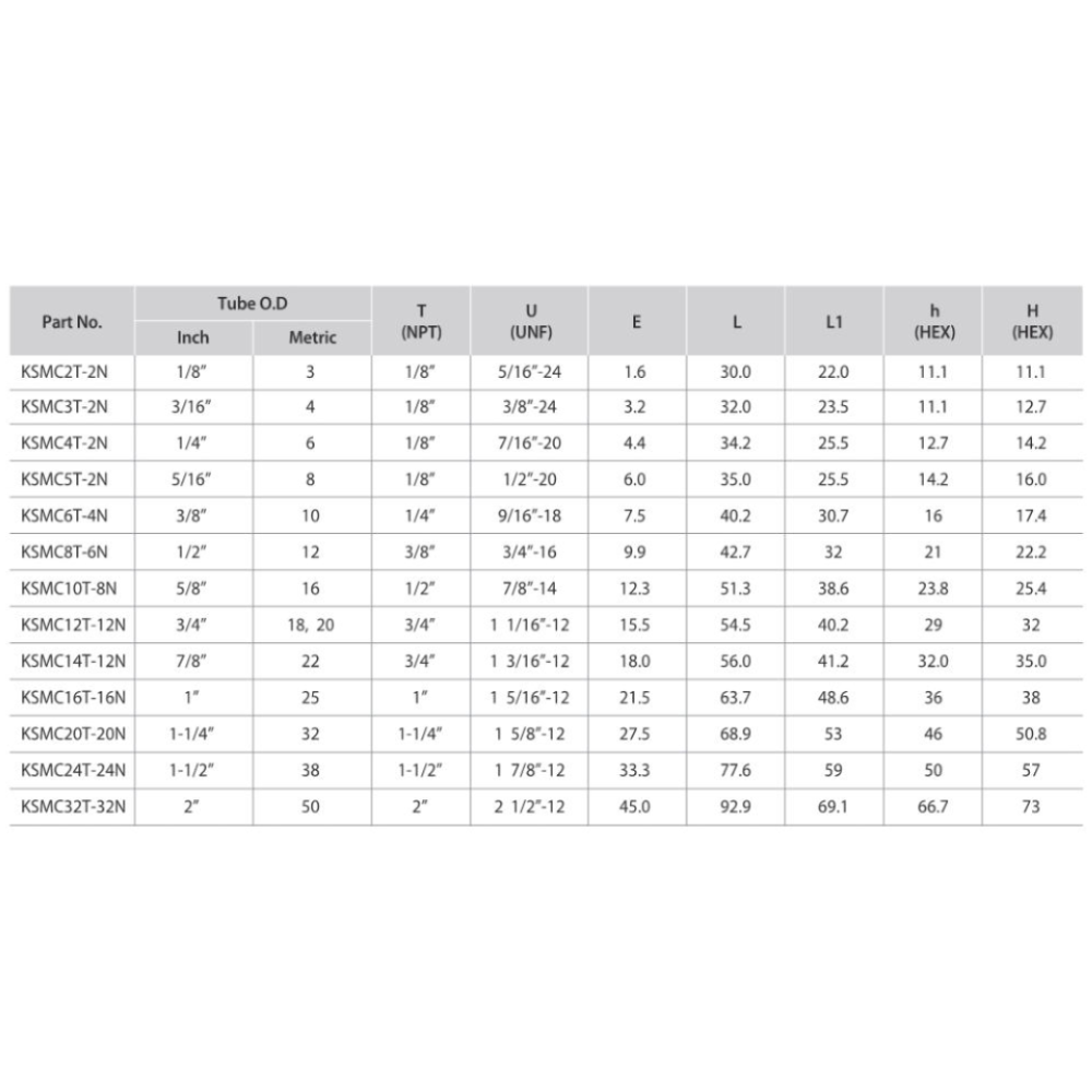 | KSMC4T-2N-SS | 1/4" | 6 |