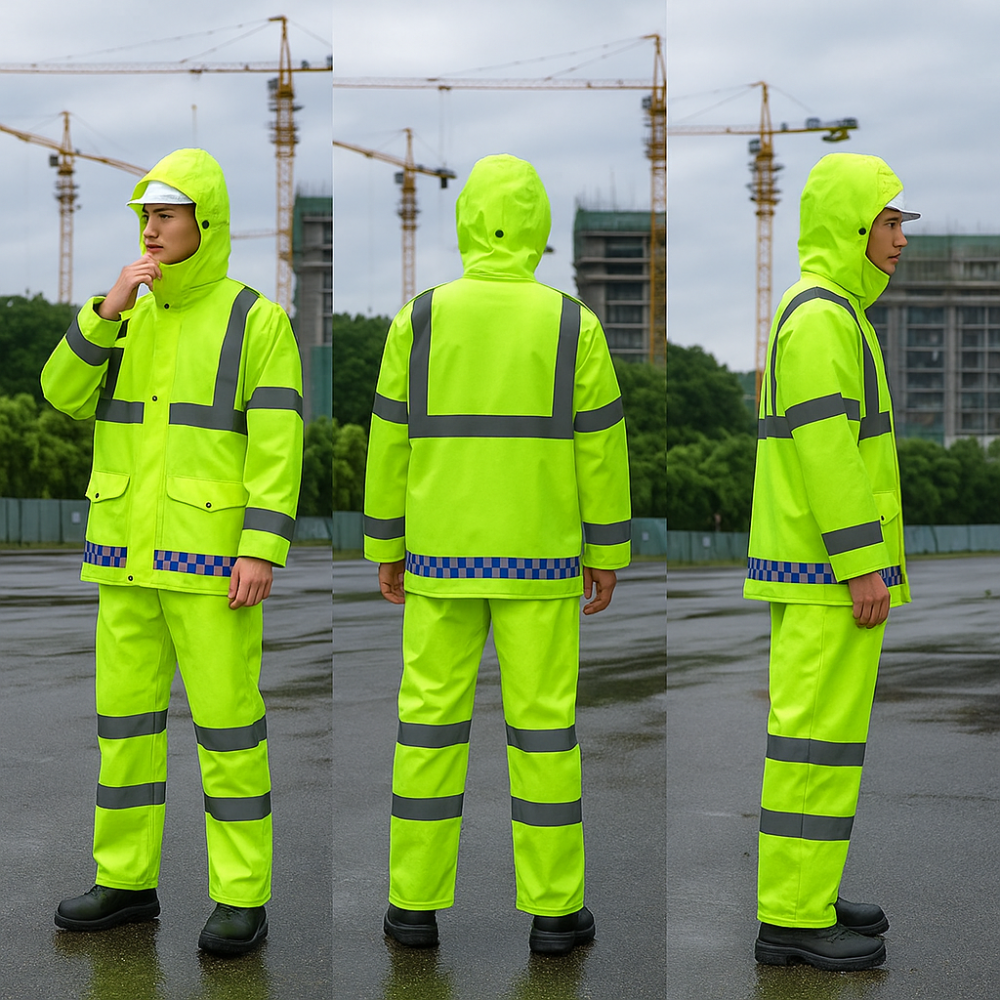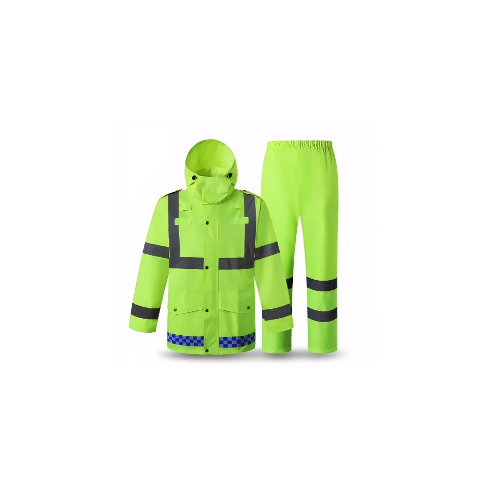 High Visibility Rain Suit. Neon Green with Reflective. 2pcs. Jacket & Pants.